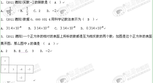 2011年德阳市初中毕业生学业考试与高中阶段学校招生考试(数学)