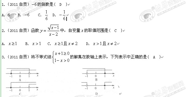 2011年自贡市初中毕业生学业考试(数学)
