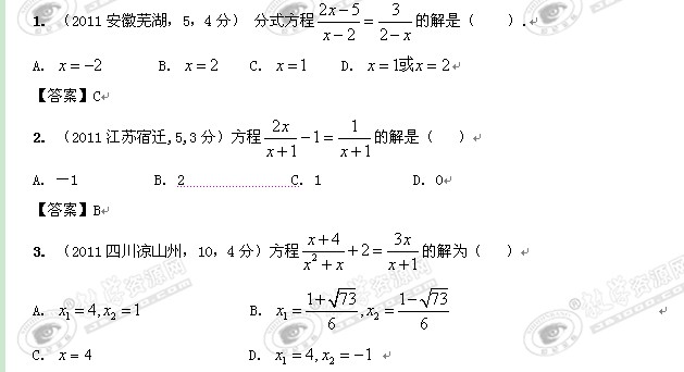 2012年中考数学一轮复习考点10: 分式方程