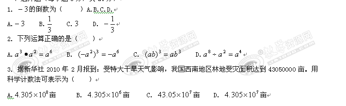2010年江苏省泰州市初中毕业、升学统一考试试卷(数学)缺答案