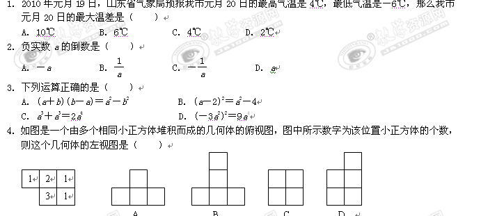 2010年山东省菏泽市初中学业水平考试(数学)答案缺页