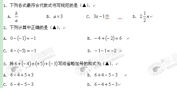 苏州市相城区11-12学年七年级上学期期中测试卷(数学)