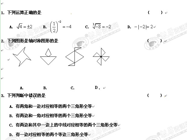 广西北海市合浦县教育局教研室11-12学年八年级上学期期中考试试题(数学)