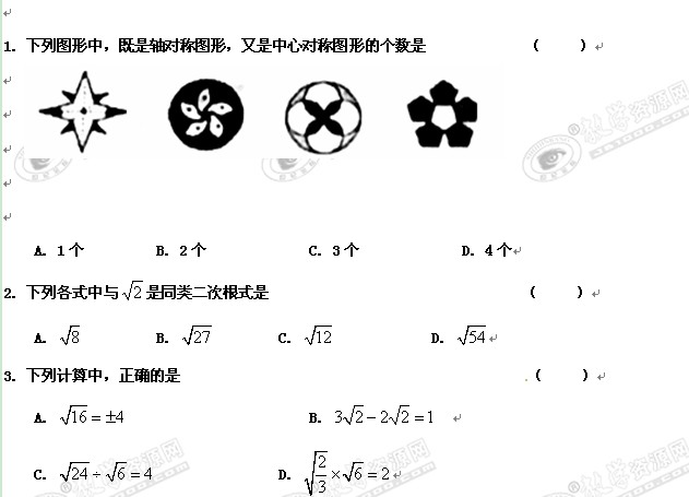 广西北海市合浦县教育局教研室11-12学年九年级上学期期中考试试题(数学)