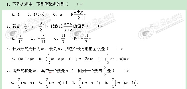 数学:第五章《代数式与函数的初步认识》测试题(青岛版七年级上)