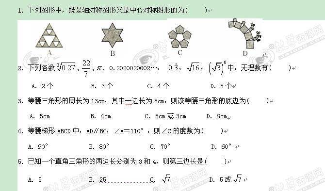 常熟市11~12学年八年级上学期期中考试试卷(数学)