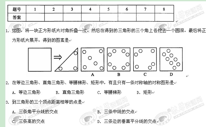 太仓市11~12学年八年级上学期期中考试试卷(数学)