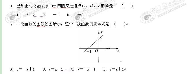 数学:第七章《 一次函数》单元检测2(浙教版八年级上)