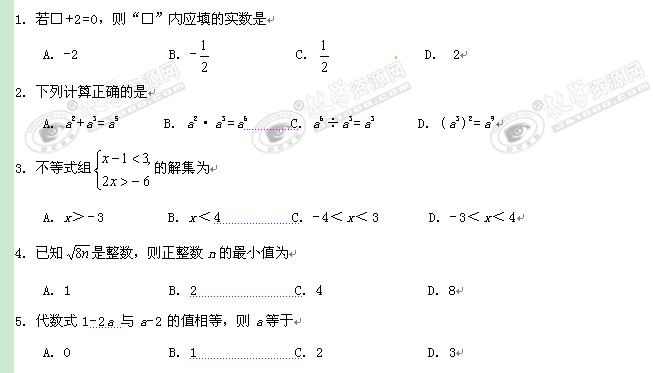 2011年海口市初中毕业生学业模拟考试(一)(数学)