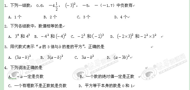 江苏省靖江市11~12学年七年级上学期期中检测(数学)