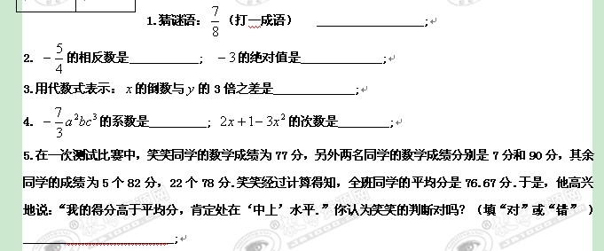 淅川县11-12学年秋期七年级上学期期中调研测试(数学)