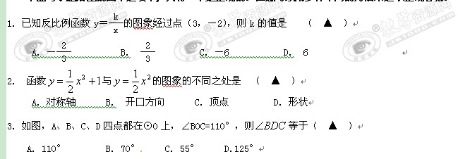 浙江省长兴县11-12学年九年级上学期期中质量调研试题卷(数学)