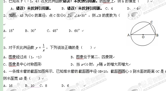 浙江省杭州市萧山区金山学校11-12学年九年级上学期期中质量检测(数学)