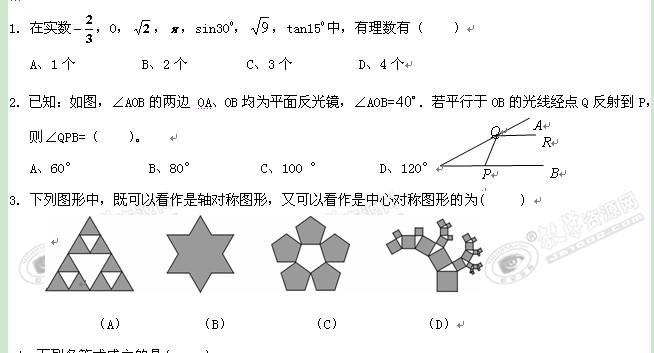 荆州市芦陵中学11-12学年中考模拟试题(数学)