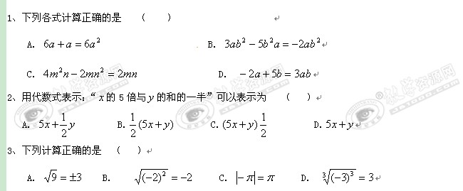 浙江省杭州市萧山区金山学校11-12学年七年级上期期中质量检测试题卷(数学)