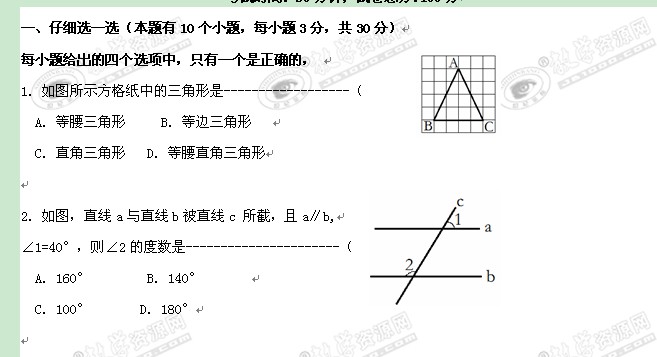 湖州市吴兴区11-12学年八校联考期中八年级上学期期中检测试题(数学)