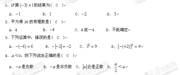 简阳市三星中学11-12学年七年级上学期半期笔试检测题(数学)