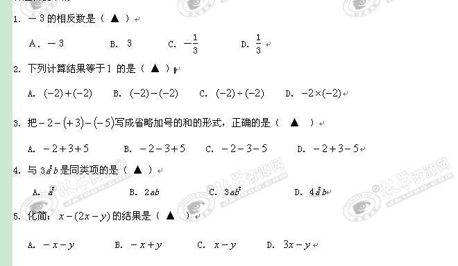 如皋市教育共同体11~12学年七年级上学期期中考试试卷(数学)