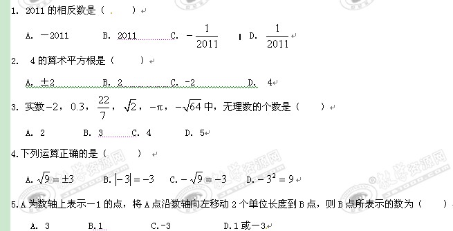 浙江省湖州市五校联考11-12学年七年级上学期期中质量调研试题卷(数学)
