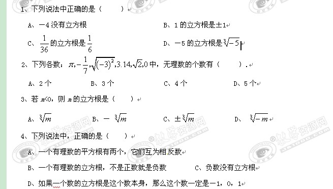 数学:福建省建瓯市徐墩中学11-12学年第十三章《实数》适应性单元练习(八年级上)