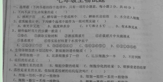 山东省微山县11-12学年七年级上学期期中考试试题(生物)