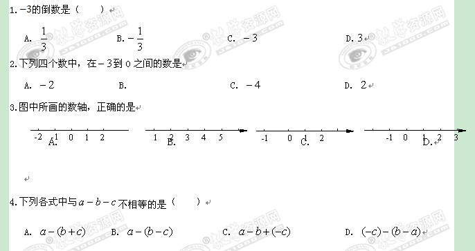 阜宁县11-12学年七年级上学期期中考试试卷(数学)缺答案