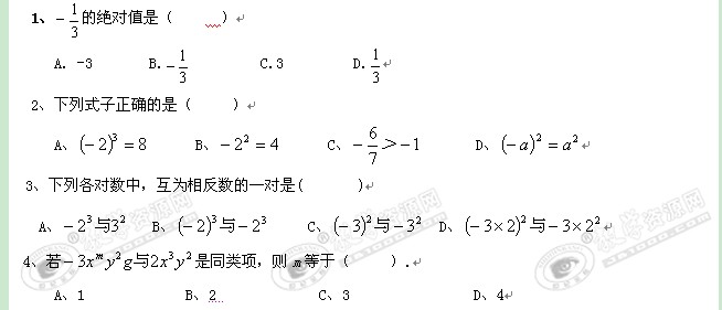贵州省求高黄中校区11-12学年七年级上学期期中测试卷(数学)缺答案