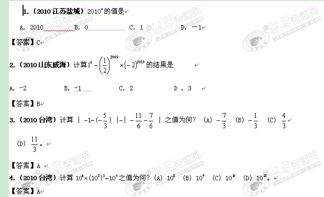 山东省枣庄市台儿庄区涧头二中2010年中考数学试题分类大全:实数的运算