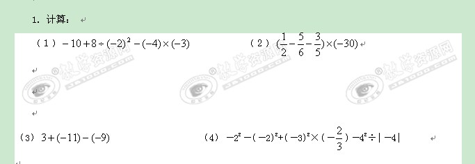 11-12学年七年级上学期试题期末考试练习十一(数学)缺答案