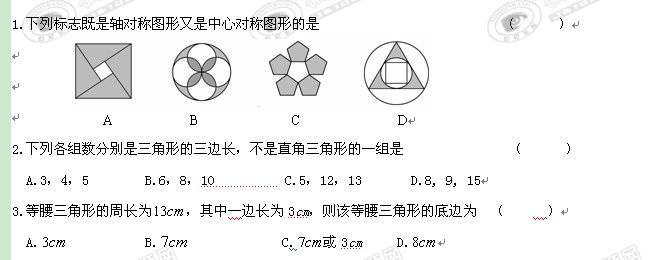 无锡市江南中学11—12学年度八年级上学期期中考试试卷(数学)缺答案