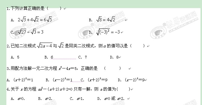 武汉市水果湖中学11-12学年九年级上学期期中试题(数学)缺答案