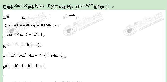天津市南开区11-12学年八年级上学期期中检测试卷(数学)