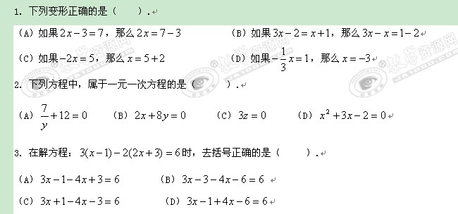 数学:《一元一次方程》知识测试题(4)(人教版七年级上)