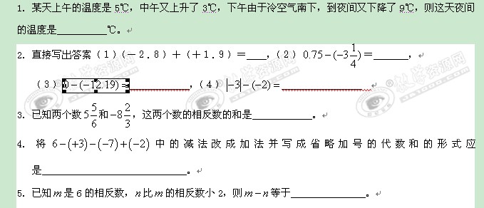 数学:2.6《有理数的加减混合运算》同步练习3(北师大版七年级上)