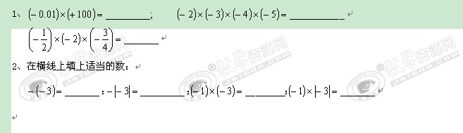数学:2.8《有理数的乘法》同步练习(三)(北师大版七年级上)