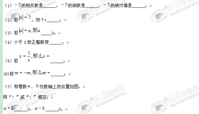 数学:第二章《有理数》整章水平测试(C)(北师大版七年级上)