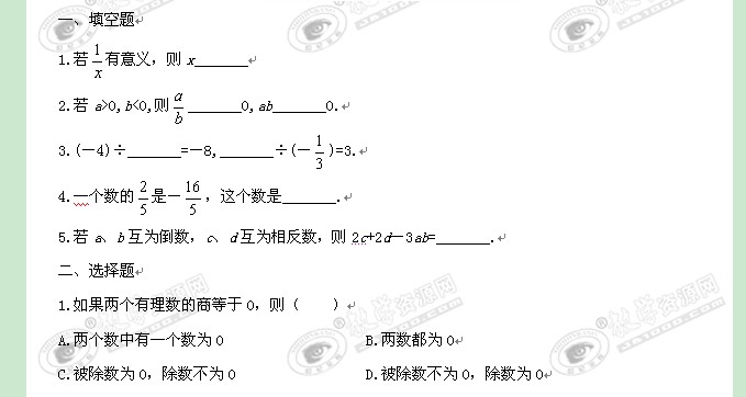 数学:《有理数的乘除法》同步练习1(北师大版七年级上)
