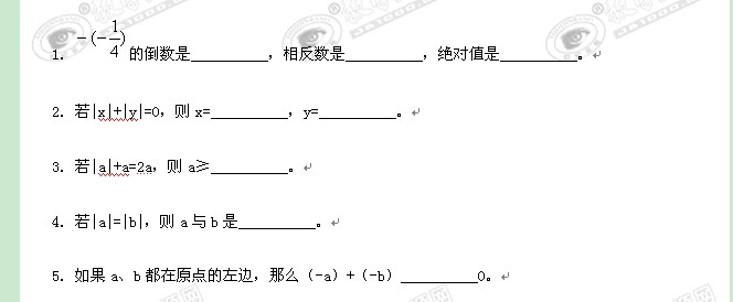 数学:《有理数的加减法》同步练习(四)(北师大版七年级上)