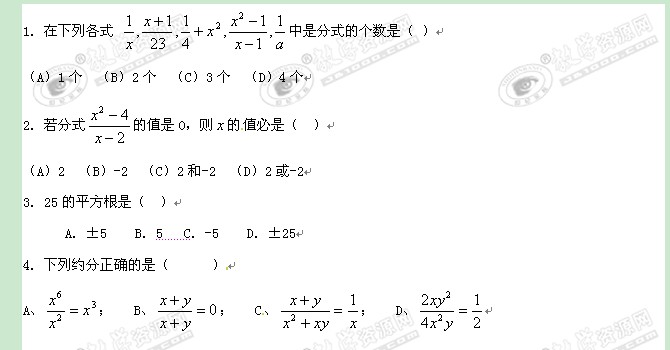北京市密云五中11-12学年八年级第二次阶段测试题(数学)缺答案