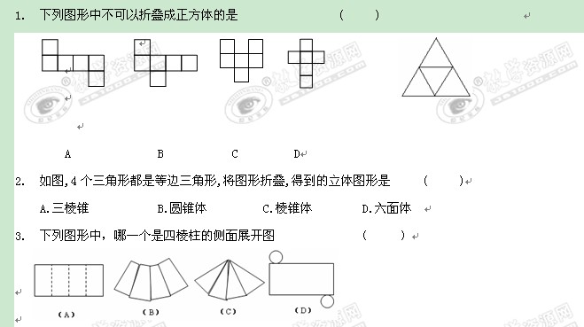 数学:5.3《展开与折叠(2)》课时训练(苏科版七年级上)