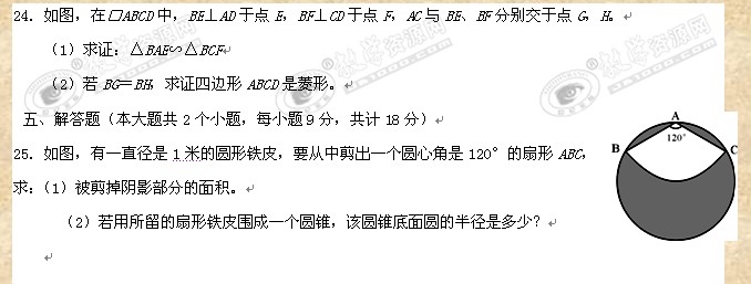 福建省龙海市第二中学2017届九年级上学期期中考试试题