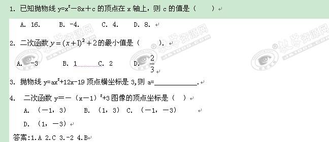 数学:2.2《二次函数的图象与性质(3)》学案(人教版九年级下)