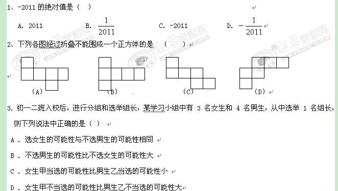 山东省济南市长清第五中学10-11学年七年级上学期末考试试题(数学)