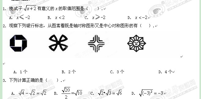 四川省江油市明镜中学 11-12学年九年级上学期期中考试试题(数学)缺答案
