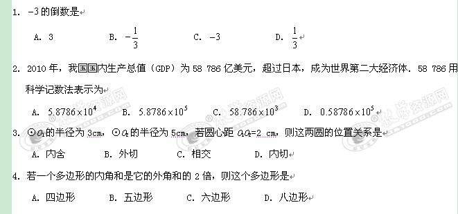 2012年北京市西城区中考模拟试卷2