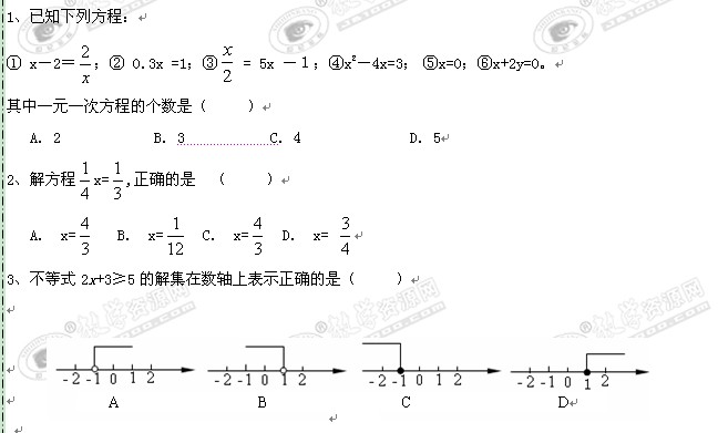 苏州市工业园区星港学校11-12学年七年级上学期12月份月考试卷(数学)