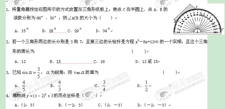 江苏省吴江市青云实验中学11-12学年九年级上学期12月份月考试卷(数学)缺答案