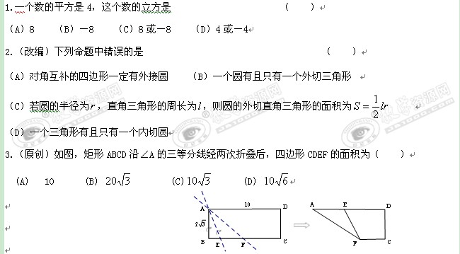 福建省龙海市第二中学2017届九年级上学期期中考试试题