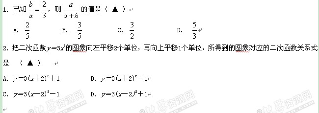 福建省龙海市第二中学2017届九年级上学期期中考试试题