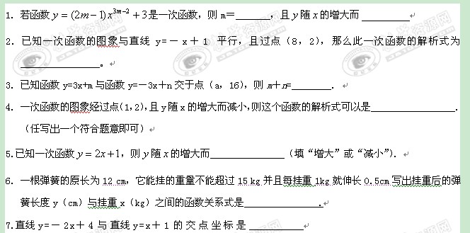 寒假作业天天练14 一次函数(二)( 八年级上)